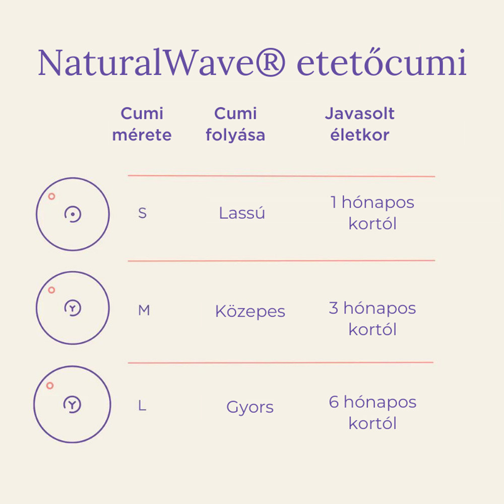 Kifejezetten szoptatott babáknak is fejlesztették. Könnyű váltást biztosít a szoptatásról a cumisüvegre és vissza. Lassú folyáserősségű, természetes hullámvonalú etetőcumival. Az etetőcumi a baba nyelvét hullámszerű mozgásra ösztönzi a száj és állkapocs természetes fejlődéséért. Csak a baba szívására ürül. Segít fenntartani a bevált szopási módot.