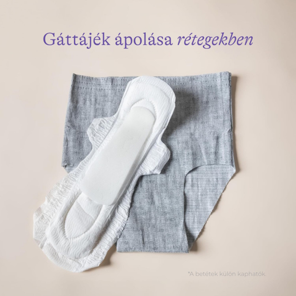 • Az anyag elég erős ahhoz, hogy a különféle betéteket a helyükön tartsa, így ezekkel együtt kényelmesen használható (pl. szülés utáni-/regeneráló betét stb.)