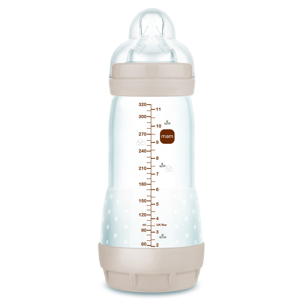 A természet ihlette színekkel és mintákkal ellátott 320 ml-es MAM Anti-Colic Matt Forest az ideális cumisüveg kisbabáknak: a babák saját tempójukban, teljesen ellazulva ihatnak.