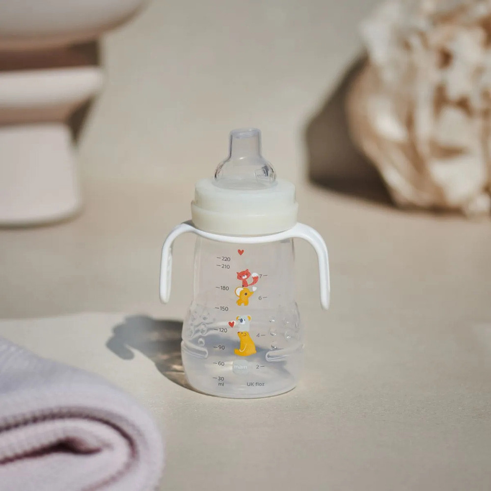 A MAM Trainer tanulópohár a sötétben világító fogókával, a funkcionalitás és dizájn tökéletes egysége.