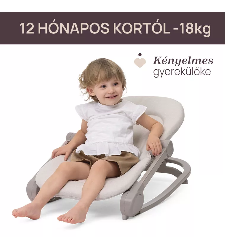 A masszív váznak köszönhetően nem csak pihenőszékként használható, hanem ülőszékként is, 1 éves kor felett akár éveken át.