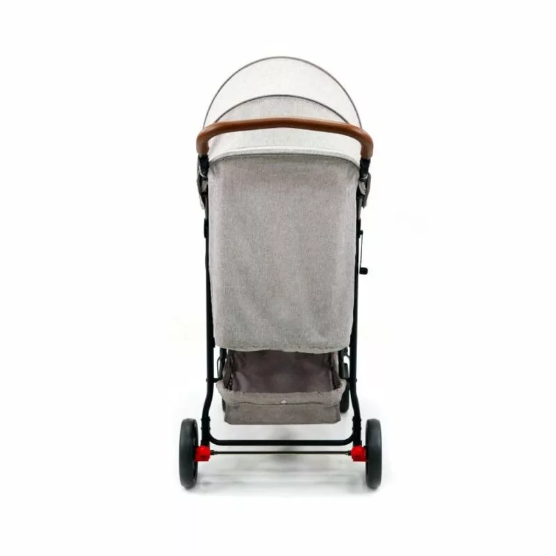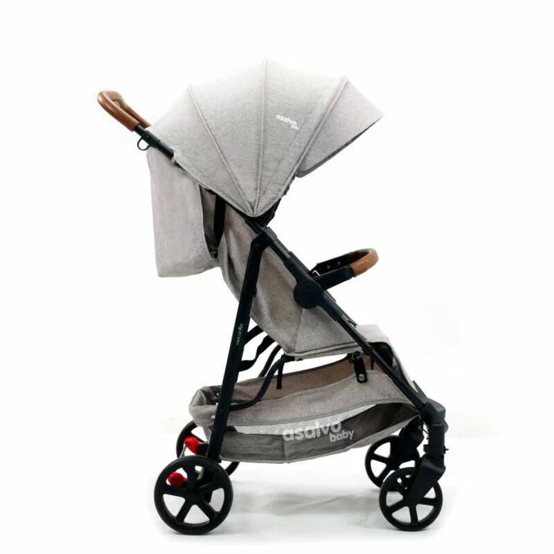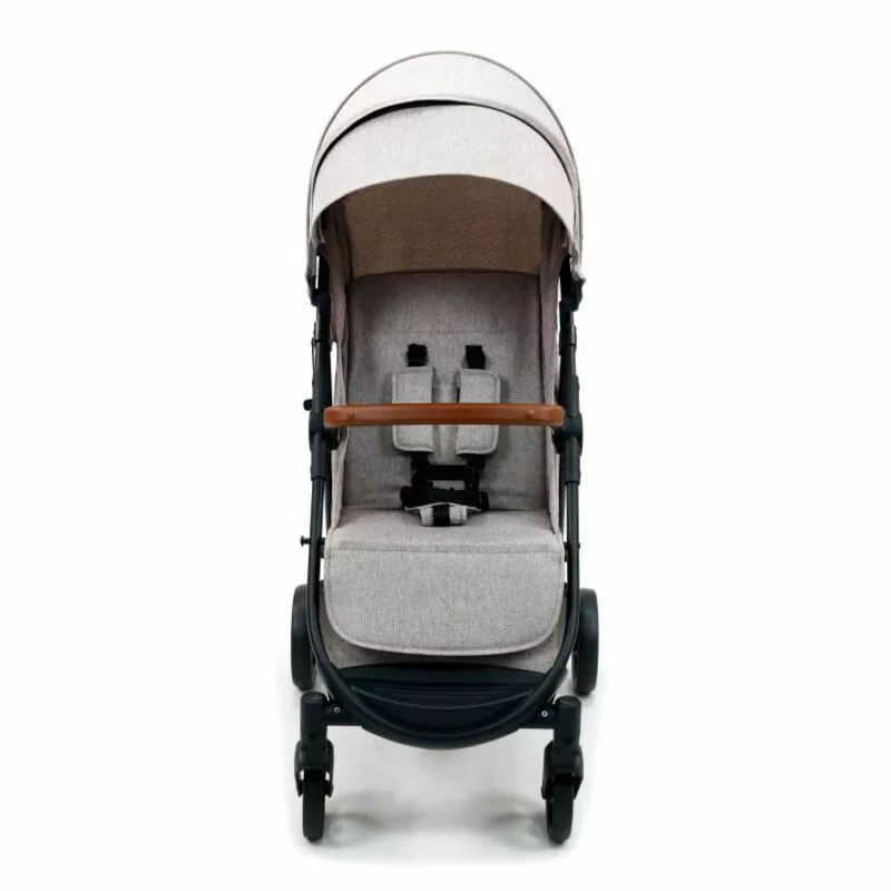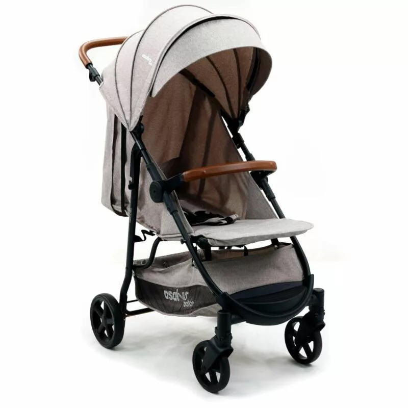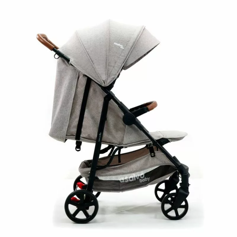 Lapra csukható, fémvázas, bőrbevonatú telitolókaros babakocsi.
