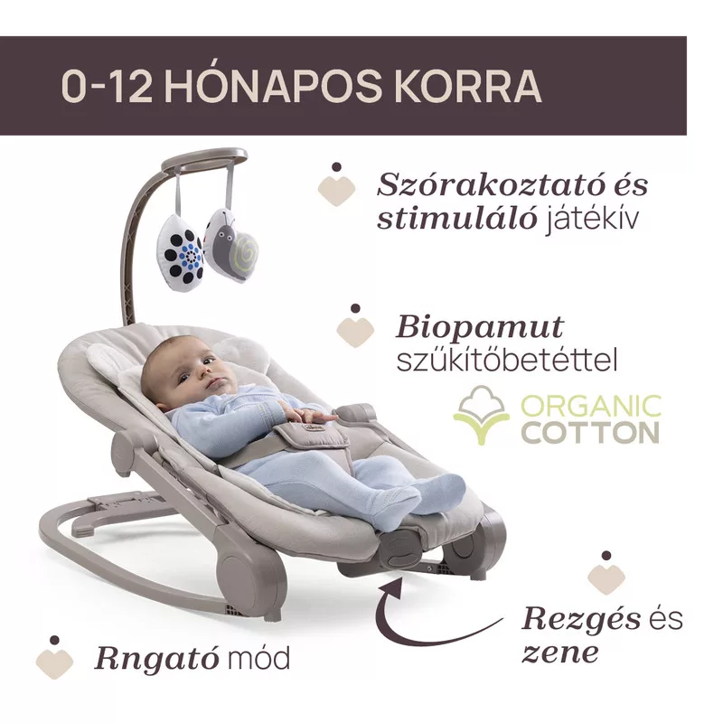 A lágy, többszólamú zene és a rezgő funkció biztosítja a baba nyugodt pihenését. A rezgő funkció inaktiválható.