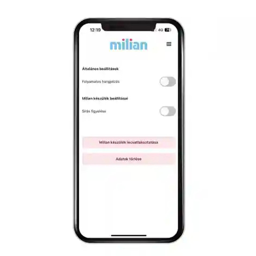 Az applikáció kizárólag a ‘Milian Pro Bluetooth’ típussal együtt működik!