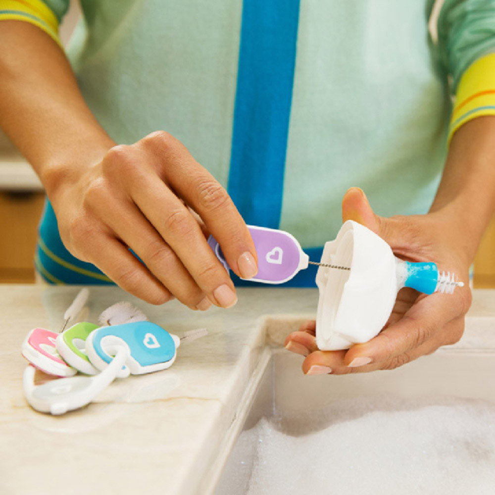 A Munchkin itatópohár tisztító kefe készlettel nincs több trükkös sarok, elérhetetlen szívószál belső. A Munchkin praktikus kefekészlete megoldja az összes tisztítási problémát legyen szó szívószálas, csőrös vagy 360 fokos itatópohárról. Négy egyedi méretű kefe egy praktikus karikára fűzve, így a poharak minden részlete tökéletesen megtisztítható.