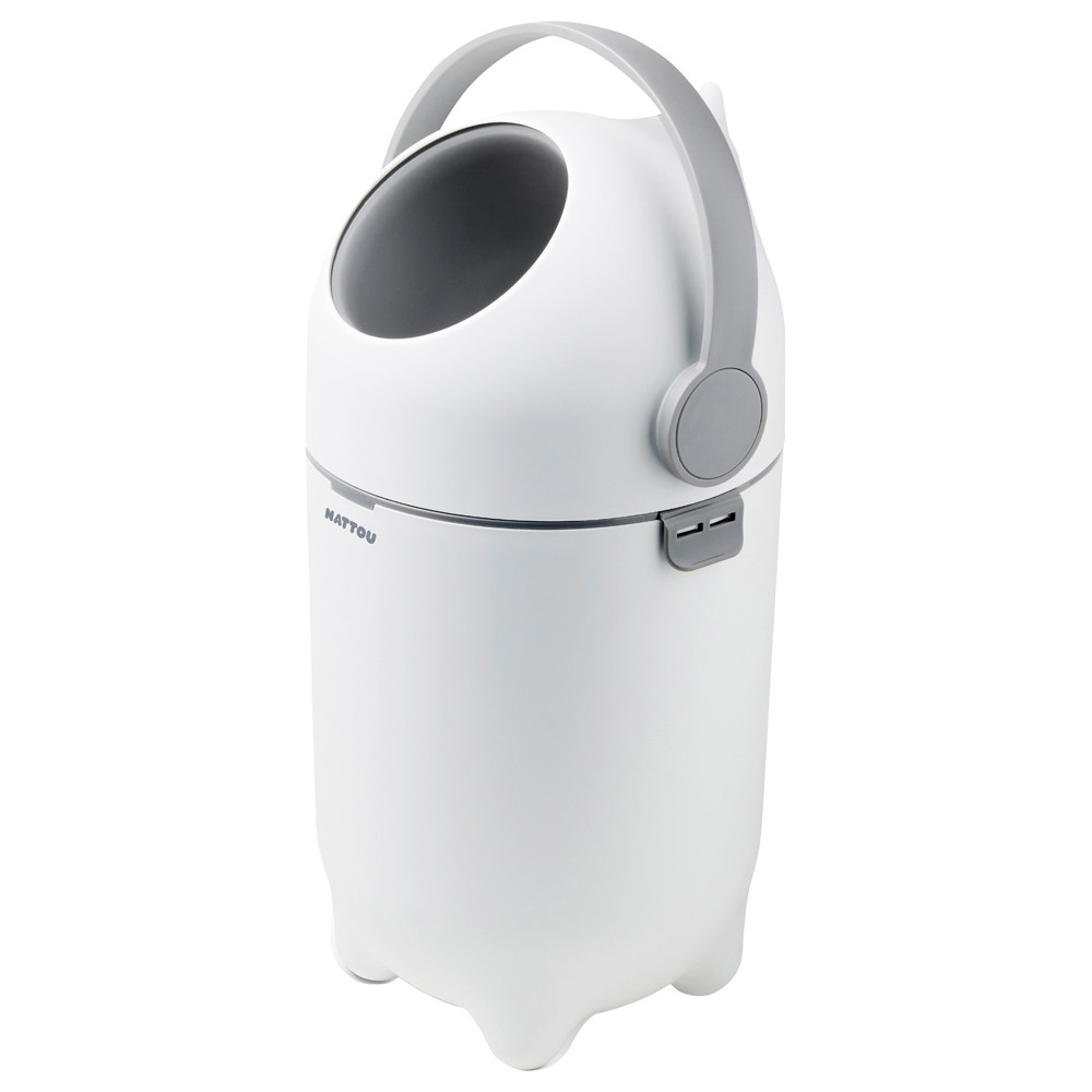 Könnyen kezelhető, akár egy kézzel is. A fogantyú felemelésével a pelenkát kidobjuk a kukába, majd leengedjük a fogantyút, hogy a pelenka a zacskóba essen.