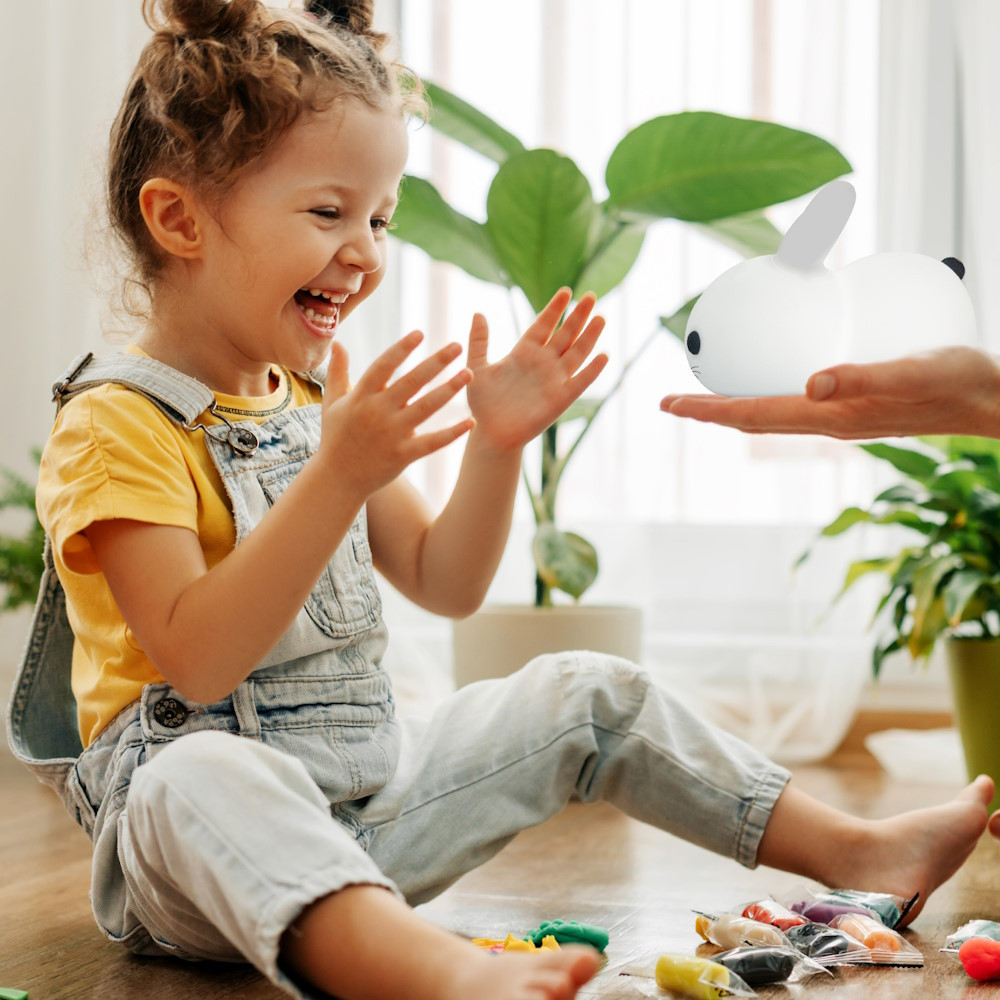 A Neno Titto nyúl alakú éjjeli lámpa gyengéden megvilágítja a szobát, ahol a baba alszik. Gyermeked számára egy tökéletes játéktárs. A nyuszin található gomb segítségével tudod be tudod állítani a kívánt színt és fény intenzitását. A világítás simán átvált a meleg, intenzív fényről a hidegebb, hideg színekre. Szabályozhatod a fény erősségét is a világostól a átlátszón át a lágytól a halványig és kiválaszthatod a világítás színét is. A készlet tartalmaz egy távirányítót is, amely lehetővé teszi a készülék távolról történő irányítását.