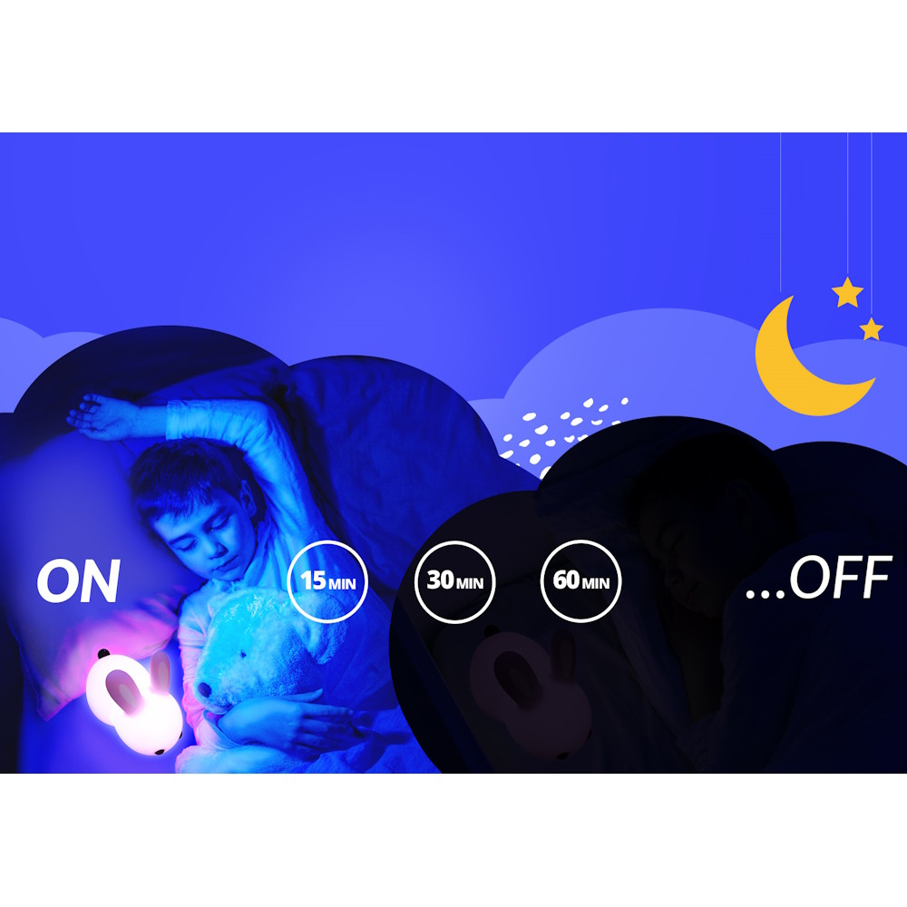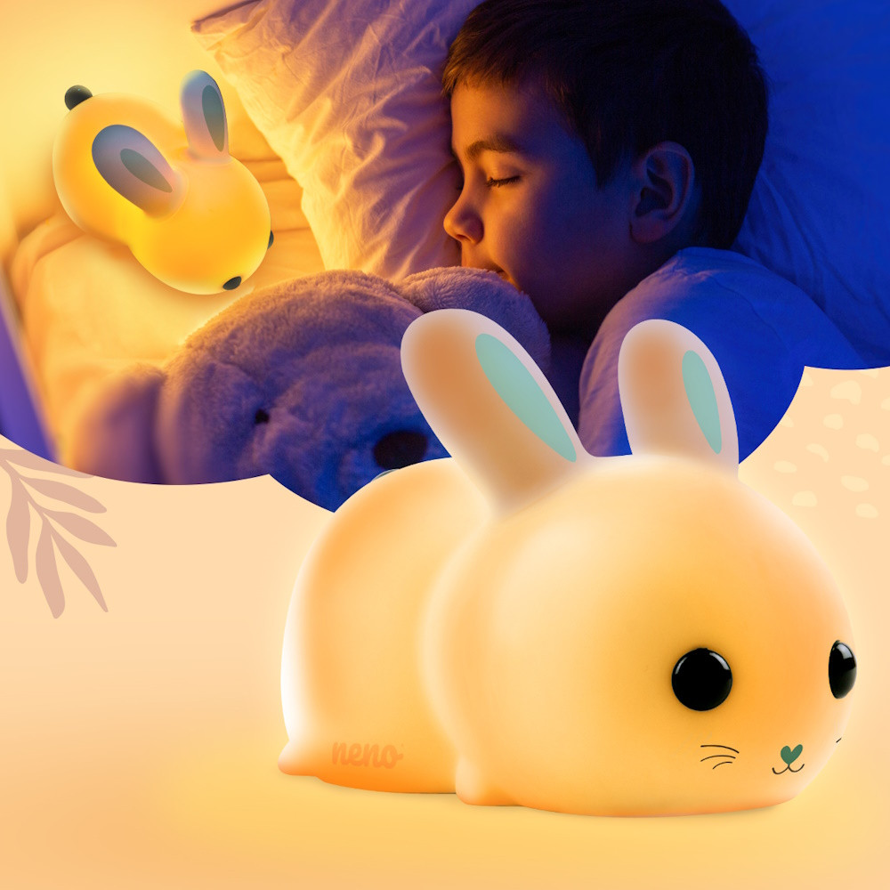A barátságos nyuszi formájú Neno Titto lámpa pótolhatatlan társ gyermeked számára. A készülék gyengéden megvilágítja a szobát, ami minden bizonnyal segít abban, hogy a gyermek nyugodtan elaludjon.