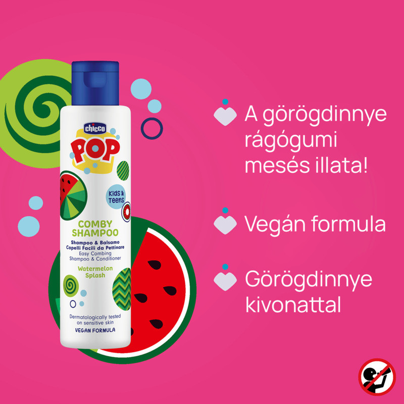 RAGYOGJ! Egészítsd ki a napi rutinodat ezzel a görögdinnye illatú 2 az 1-ben samponnal és balzsammal! Tisztítja a hajat, puhává és könnyen fésülhetővé varázsolja. Nem irritálja a szemet.