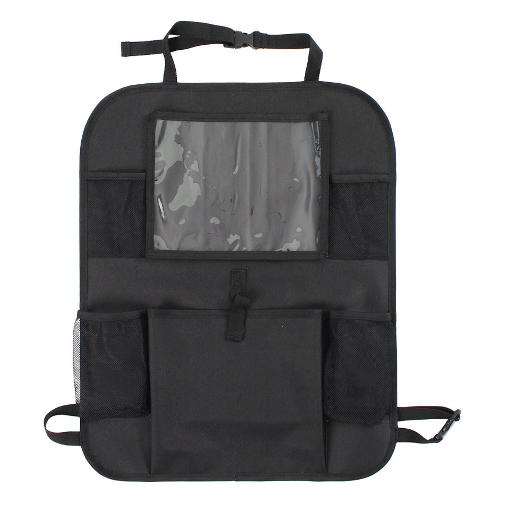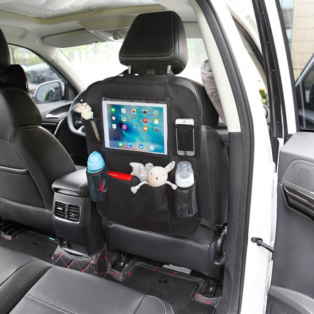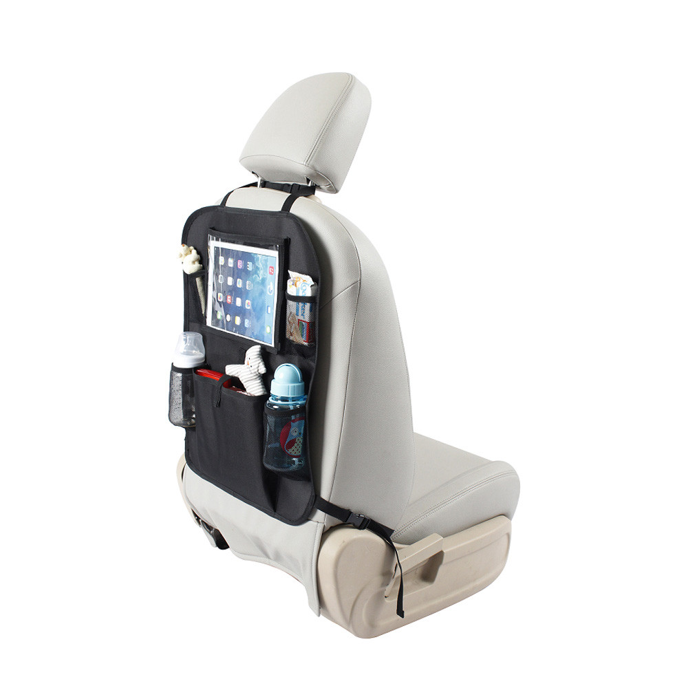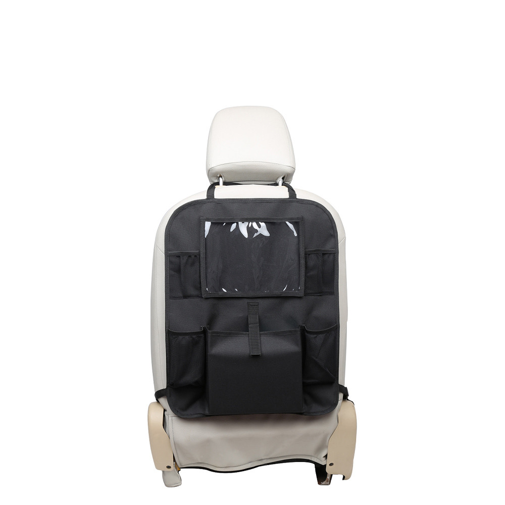 Az univerzális rögzítésnek köszönhetően szinte minden autóval kompatibilis. A rendszerező a táblagépzseb mellett 4 hálós zsebet és egy extra nagy központi rekeszt is tartalmaz. A mélyebb alsó zsebek alkalmasak egy vizes palack tárolására, a felső kisebb zsebek pedig különböző apróságok számára. A nagy rekeszben több játék is elfér.