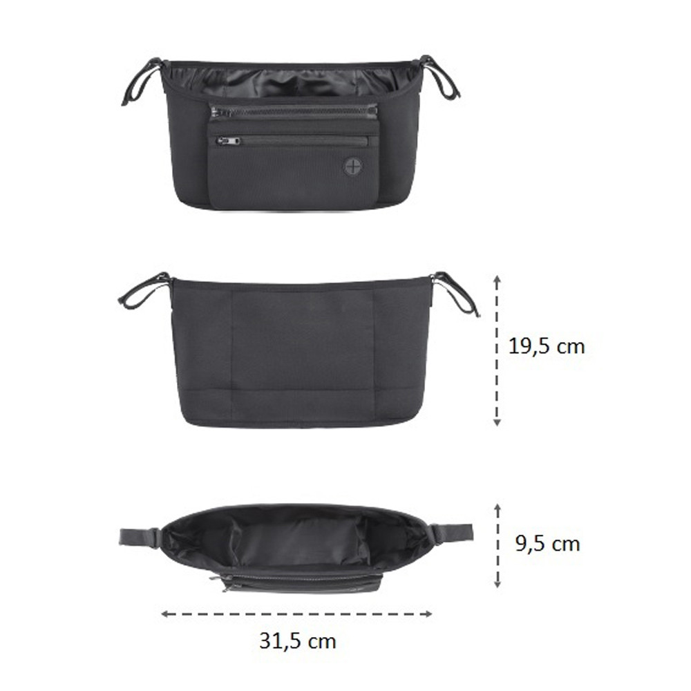 Két oldalsó rekeszben egy palack, termosz vagy egy pohár kávé tárolható. A nagy középső rekeszbe könnyedén elfér minden, amire egy séta vagy kirándulás során szüksége van. Az elülső levehető zseb külön is használható. Kényelmesen tárolja mobiltelefonját, és fejhallgató-csatlakozóval is rendelkezik, így sétálás közben is hallgathatja kedvenc zenéjét vagy telefonálhat. Ha megáll a játszótéren, egyszerűen csatlakoztassa le a zsebet a mobiltelefonjával és egyéb értékeivel együtt, és vigye magával. Minden rendezetten, mindig kéznél lesz, és nincs szüksége táskára, miközben sétál.