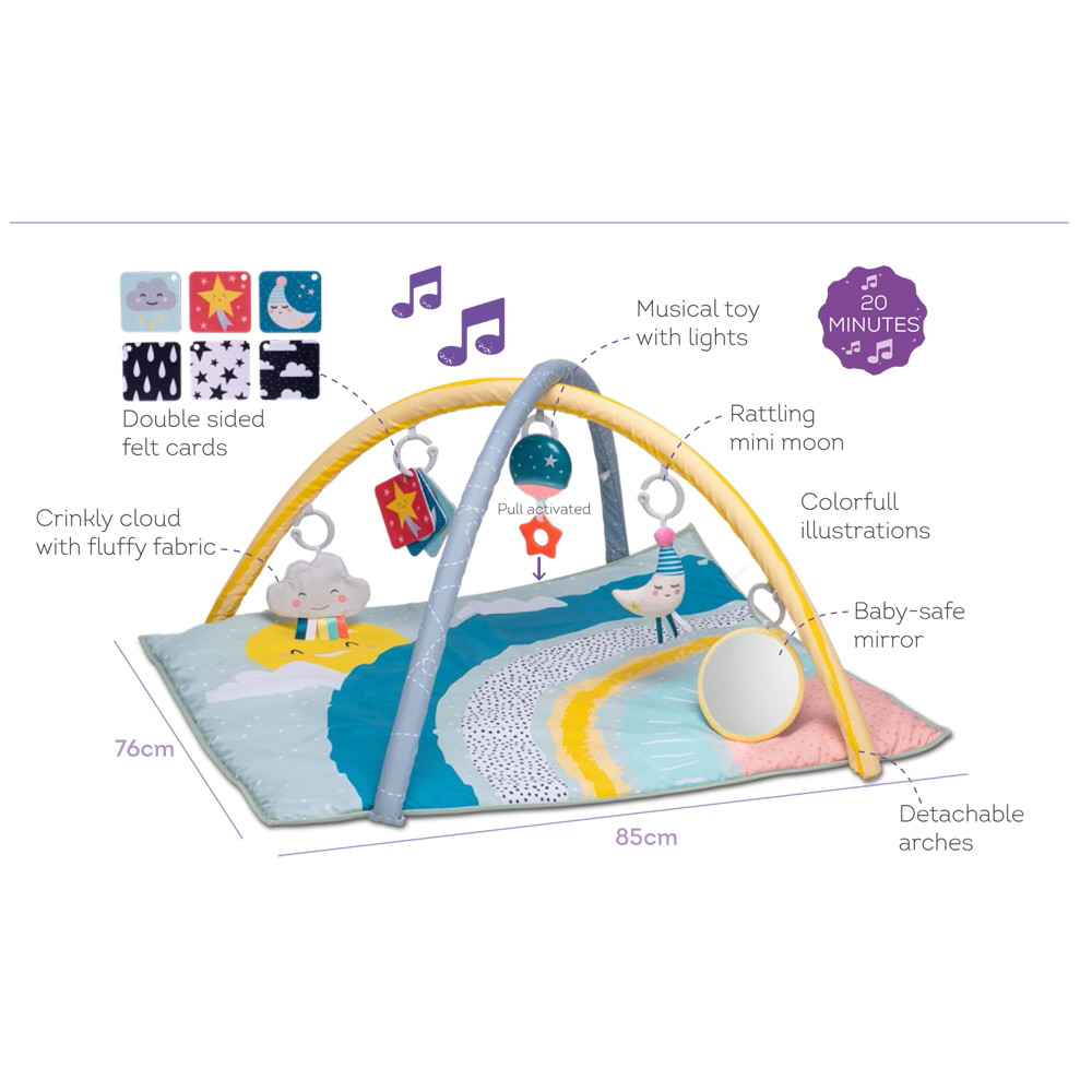 Puha íveket, szórakoztató játékokat tartalmaz és egy zenés játékot fényekkel. Különösen úgy tervezték, hogy fejlessze a baba érzékeit, finom és nagymotoros készségeit és szem-kéz koordinációját. Tanul és fejlődik, miközben játszik.