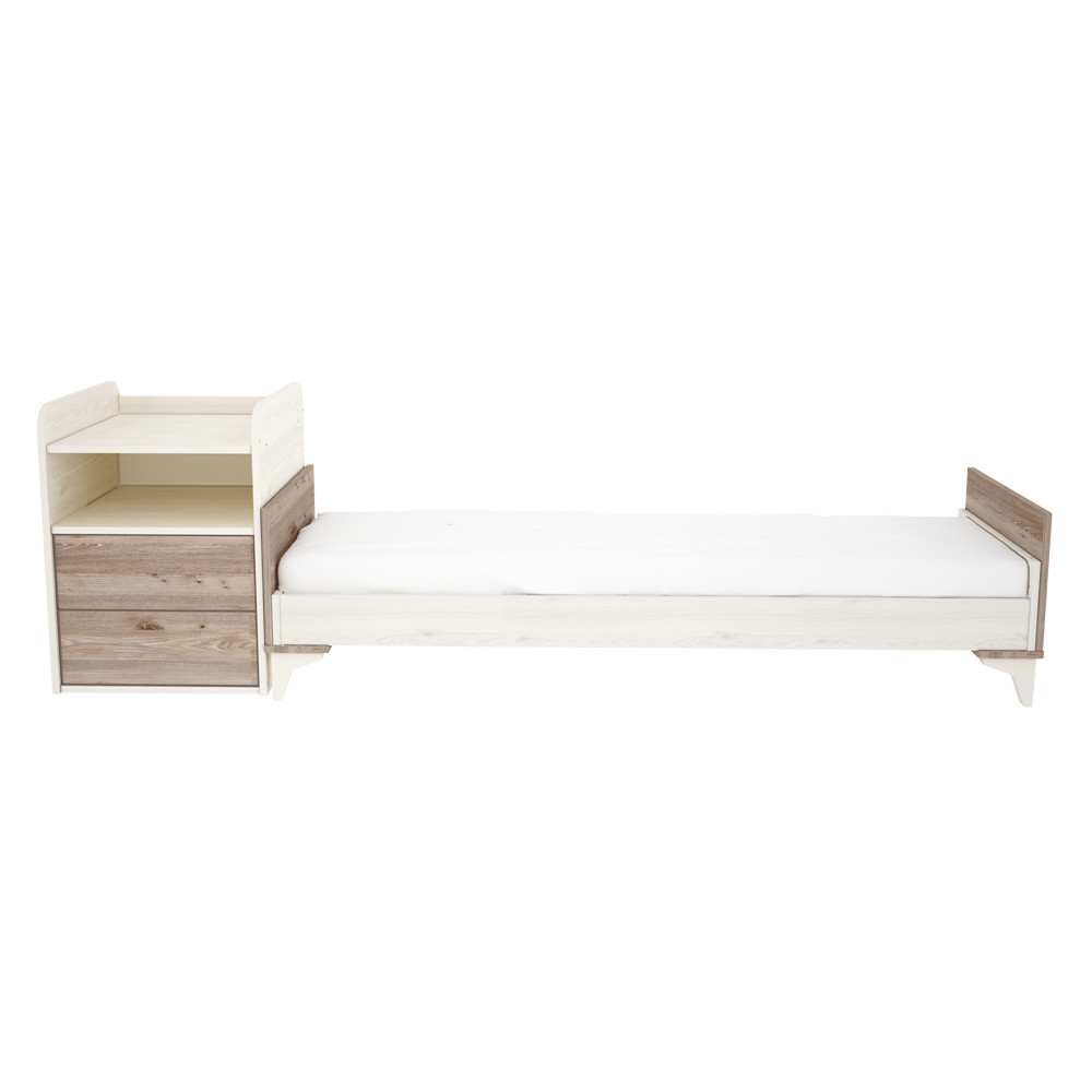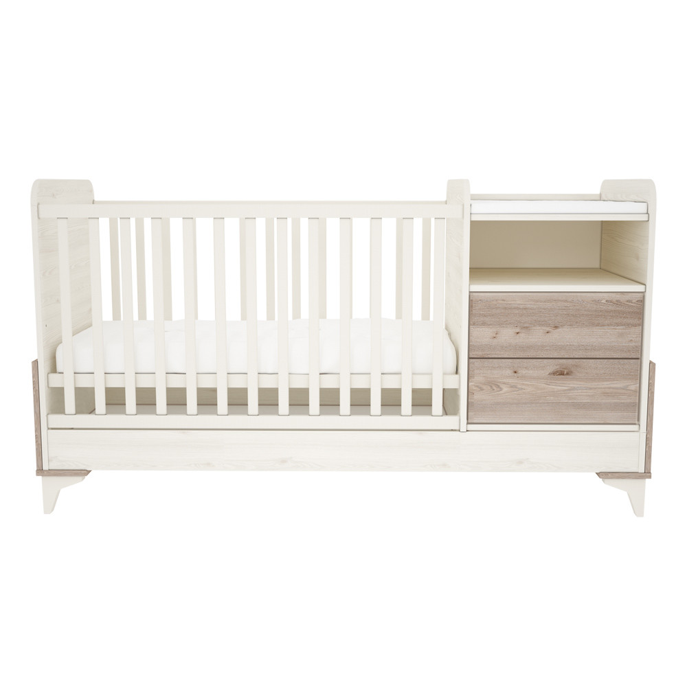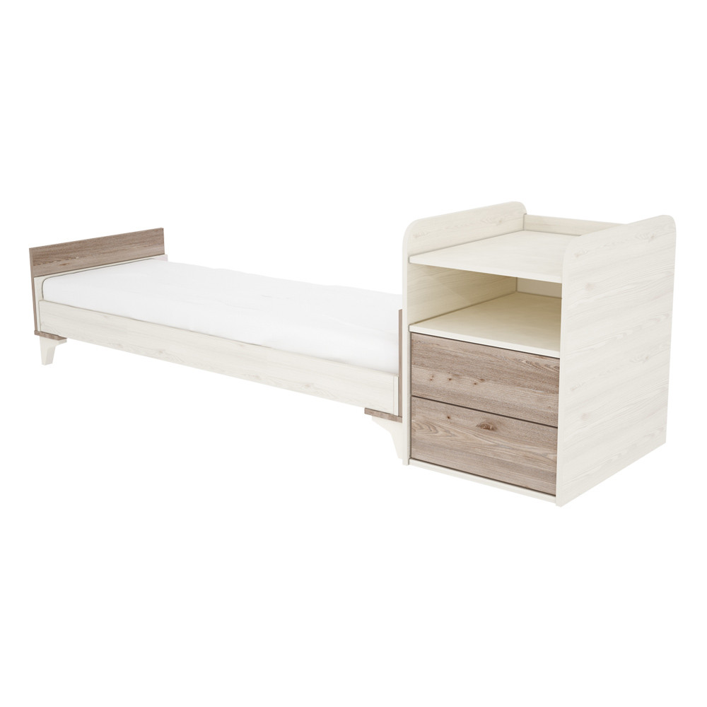 pelenkázószekrény leemelésével, egy ifjúsági heverőt és egy éjjeli szekrényt kapunk. A kiságy könnyedén átalakítható, nincs szükség pótalkatrészek megvásárlására, ezek a termékkel együtt járnak.