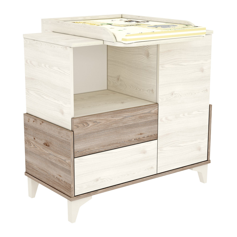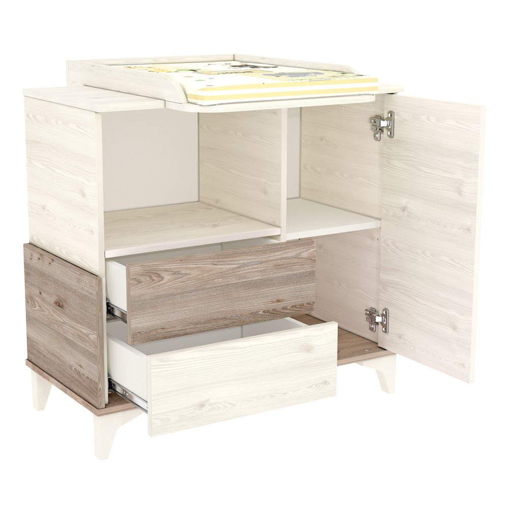 A szekrény eltolható feltéttel rendelkezik mely lehetővé teszi a kényelmesebb pelenkázást. Mindemellett a pelenkázós időszak végén sem kell megválnia a bútortó l, hiszen az a pelenkázófeltét