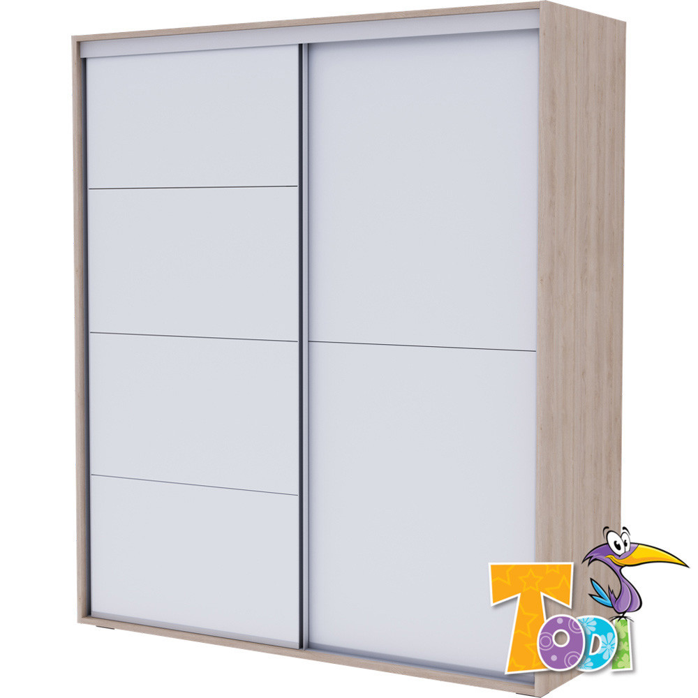 A Classic tolóajtós gardróbszekrény kialakításánál arra törekedtünk, hogy kényelmesen pakolható, praktikusan kihasználható legyen! Akasztós, polcos, valamint fiókos részek egyaránt megtalálhatók ebben a gardróbszekrényben. A bal oldali rész polcos és akasztós is lehet tetszés szerint. (polcokat és 2 db vállfatartót is mellékelünk) A jobb oldali rész 2 db fékezős fiókot tartalmaz. A fiókok felett polcos akasztós rész található. A laminált bútorlapból készült alkatrészek élei 2 mm vastag Pvc-vel (un.: Abs) kerülnek élzárásra, melyek a hagyományos élfóliákhoz képest sokkal magasabb élettartamot biztosítanak. A tolóajtók vasalata (oldal profilok, alsó-felső sínek) eloxált aluminium színű és golyóscsapágyazott görgőkkel ellátott. A tolóajtókat összeszerelve dobozban, a bútortestet lapra szerelve dobozban szállítjuk. Minden gardróbhoz biztonsági babazárat mellékelünk.