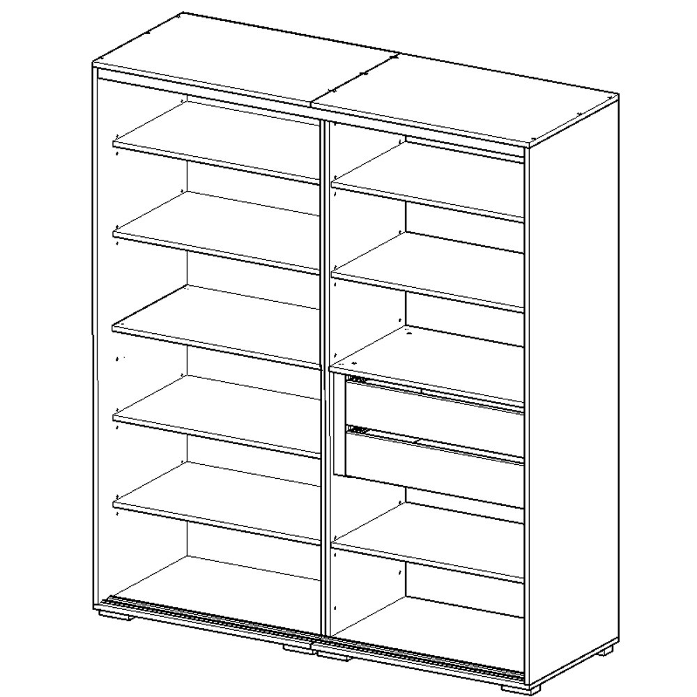 A White Bunny gardróbszekrény kialakításánál arra törekedtünk, hogy kényelmesen pakolható, praktikusan kihasználható legyen! Akasztós, polcos, valamint fiókos részek egyaránt megtalálhatók ebben a gardróbszekrényben. A bal oldali rész polcos és akasztós is lehet tetszés szerint. (polcokat és 2 db vállfatartót is mellékelünk) A jobb oldali rész 2 db fékezős fiókot tartalmaz. A fiókok felett polcos akasztós rész található. A laminált bútorlapból készült alkatrészek élei 2 mm vastag Pvc-vel (un.: Abs) kerülnek élzárásra, melyek a hagyományos élfóliákhoz képest sokkal magasabb élettartamot biztosítanak. A tolóajtók vasalata (oldal profilok, alsó-felső sínek) eloxált aluminium színű és golyóscsapágyazott görgőkkel ellátott. A tolóajtókat összeszerelve dobozban, a bútortestet lapra szerelve dobozban szállítjuk. Minden gardróbhoz biztonsági babazárat mellékelünk.