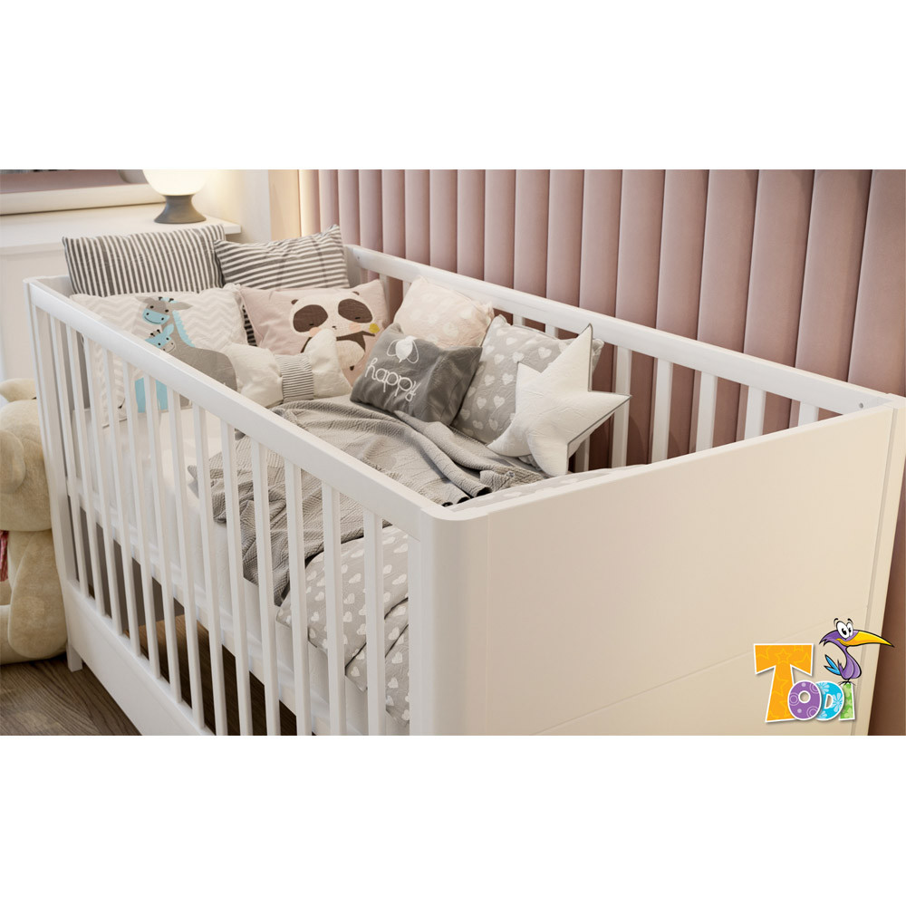 70×140 cm-es átalakítható babaágy tökéletes választás azoknak, akik 2 éves korig babaágyként, 2-4 éves kor között junior ágyként szeretnék használni.