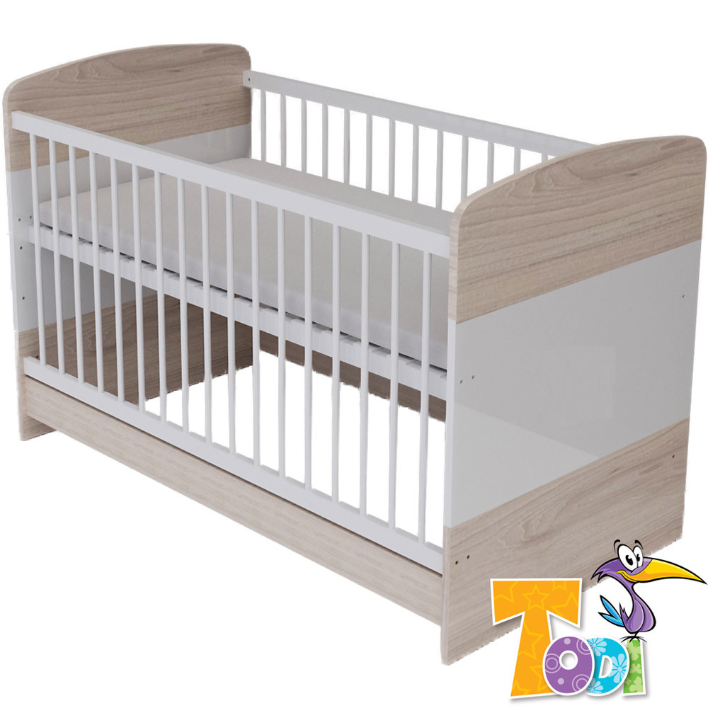 A Magic elegáns, klasszikus megjelenésű termékcsalád, amely szupermatt felületű, fahatású bútortesttel és magasfényű fehér fronttal rendelkezik. A Magic 70 x 140 cm-es átalakítható gyerekágy tökéletes választás azoknak, akik 2 éves korig babaágyként, 2-6 éves kor között junior ágyként szeretnék használni. A fekvőfelület több magasságban állítható, a baba növekedési üteméhez igazodva. A gyerekágy oldalsó kivehető pálcái megkönnyítik a járni tudó baba ki- és bejutását az ágyba. Junior ággyá alakításhoz plusz alkatrészt nem kell vásárolni! A laminált bútorlapból készült alkatrészek élei 2 mm vastag Pvc-vel (un.: Abs) kerülnek élzárásra, melyek a hagyományos élfóliákhoz képest sokkal magasabb élettartamot biztosítanak. A matracot tartó fekvőrácsot bükkfa keretre épített 8 mm vastag nyír rétegelt lemez alkotja, melyet nem lakkozunk. A gyerekágy felületkezelését tanúsítvánnyal rendelkező, bababarát, vízbázisú felületkezelő anyagokkal végezzük.