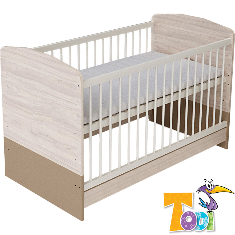 Elegáns, visszafogott, letisztult forma, ugyanakkor kellemes, harmónikus benyomást kelt. A cappuccino és a krémes vanília színek a szilfa természetességével melegséget, otthonosságot, nyugalmat árasztanak. A Teddy 70 x 140 cm-es átalakítható gyerekágy tökéletes választás azoknak, akik 2 éves korig babaágyként, 2-6 éves kor között junior ágyként szeretnék használni. A fekvőfelület több magasságban állítható, a baba növekedési üteméhez igazodva. A gyerekágy oldalsó kivehető pálcái megkönnyítik a járni tudó baba ki- és bejutását az ágyba. Junior ággyá alakításhoz plusz alkatrészt nem kell vásárolni! A laminált bútorlapból készült alkatrészek élei 2 mm vastag Pvc-vel (un.: Abs) kerülnek élzárásra, melyek a hagyományos élfóliákhoz képest sokkal magasabb élettartamot biztosítanak. A matracot tartó fekvőrácsot bükkfa keretre épített 8 mm vastag nyír rétegelt lemez alkotja, melyet nem lakkozunk. A gyerekágy felületkezelését tanúsítvánnyal rendelkező, bababarát, vízbázisú felületkezelő anyagokkal végezzük.