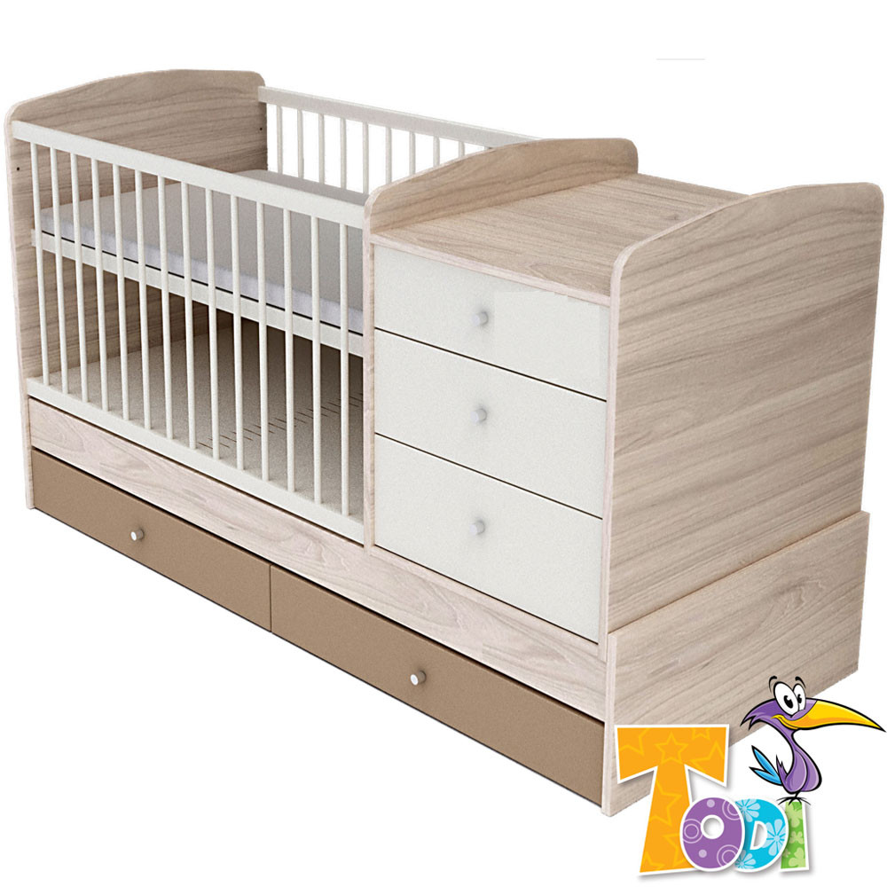 Elegáns, visszafogott, letisztult forma, ugyanakkor kellemes, harmónikus benyomást kelt. A cappuccino és a krémes vanília színek a szilfa természetességével melegséget, otthonosságot, nyugalmat árasztanak. A maximális helykihasználást szem előtt tartva terveztük a Teddy pelenkázóval kombinált gyerekágyunkat, mely 2 éves korig babaágyként, 2-8 éves kor között juniorágyként használható. A fekvőrács három magasságban állítható. A gyerekágy a rácsok és a komód rész eltávolítása után ifjúsági heverővé alakítható, a komód pedig éjjeli szekrénnyé válhat. A gyerekágy átalakításához nincs szükség pótalkatrészek megvásárlására. A gyerekágy alatt található két részes gurulós ágyneműtartó is segíti a kényelmes tárolást. A gyerekágy oldalrácsai bükkfából készülnek, 2 kivehető pálcával rendelkeznek, és egészségre ártalmatlan vizes bázisú lakkal vannak felületkezelve. A bútortestek és frontok élei 2 mm vastag Pvc-vel (un.:ABS) kerülnek élzárásra, melyek a hagyományos élfóliákhoz képest sokkal magasabb élettartamot biztosítanak. A gyerekágy lapra szerelve kerül becsomagolásra, az összeszerelési útmutatót mellékeljük, amivel könnyen összeszerelhetik bútorukat.