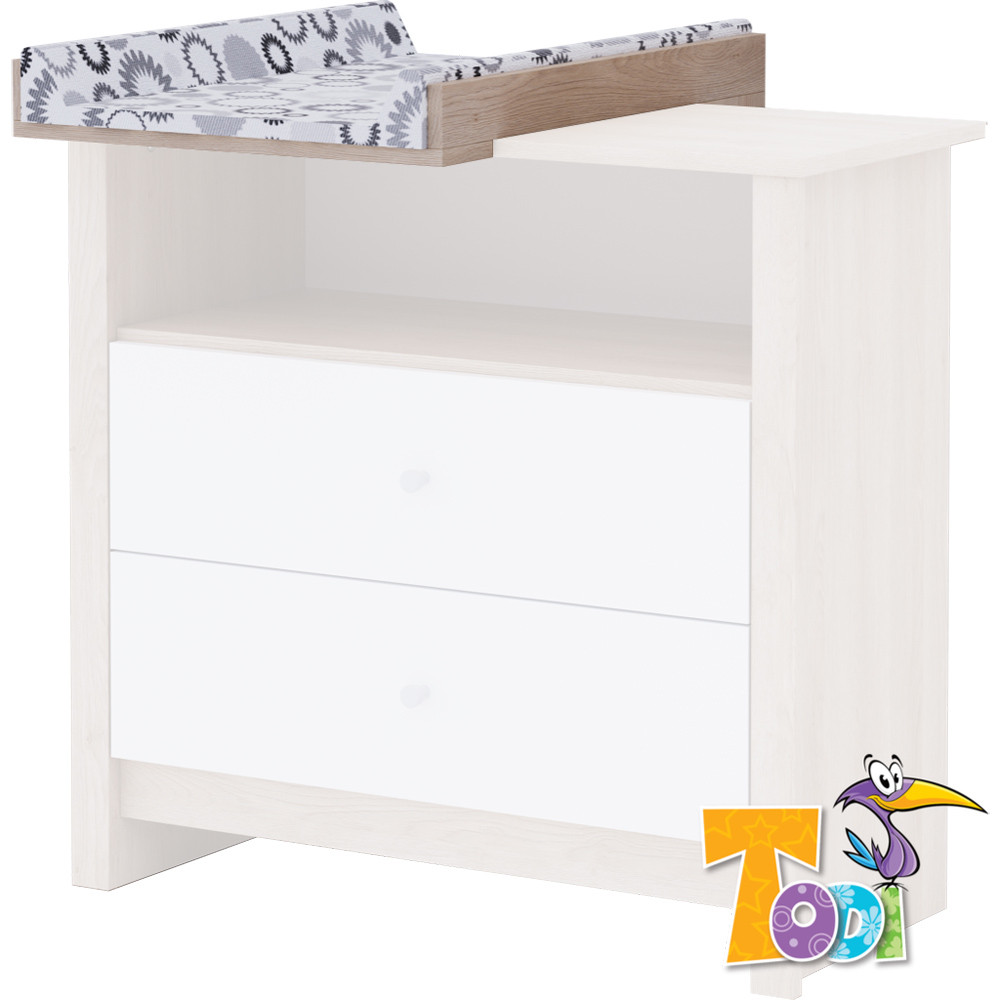 A Classic pelenkázó toldalék 8 cm magas leesésgátlójával megakadályozza gyermeke legurulását pelenkázás közben. A pelenkázó lap a komód tetején jobb- és baloldalt is elhelyezhető. Mellette a pelenkázáshoz szükséges dolgok könnyen elférnek. A pelenkázó toldalék nem tartozéka a komódnak, opcionálisan megvásárolható. A leesésgátló élein 2 mm vastag műanyag ABS élzárást alkalmazunk, melynek 2 mm-es lekerekítése nem okoz sérülést a végtagjait beütő gyermeknek. Lapra szerelve kerül becsomagolásra, az összeszerelési útmutatót mellékeljük, amivel könnyen összeszerelheti bútorát.