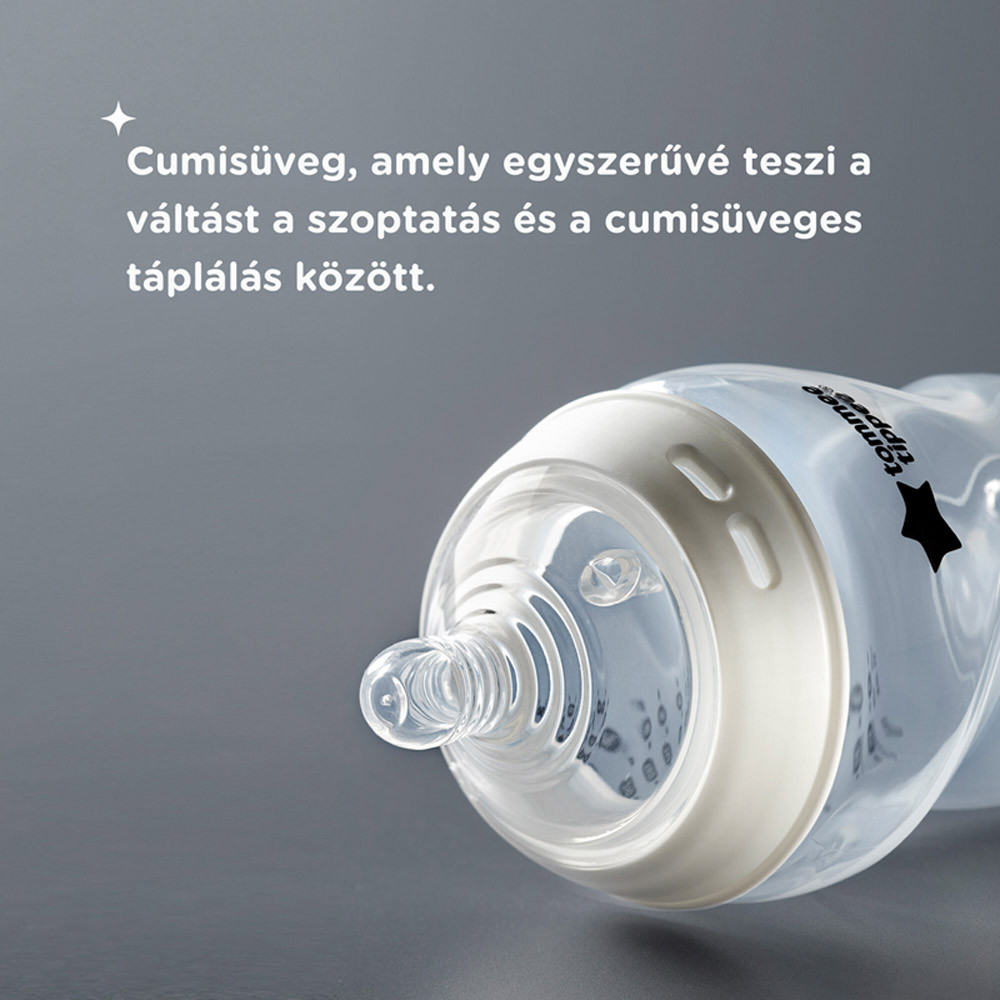 • Igény szerinti etetés: A puha szilikon cumi úgy hajlik és nyúlik, mint egy mellbimbó, és lehetővé teszi, hogy a baba kényelmesen, saját tempójában egyen.