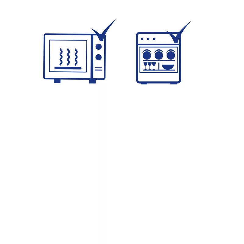Mikrózható. Mosogatógép felső rekeszében mosható.