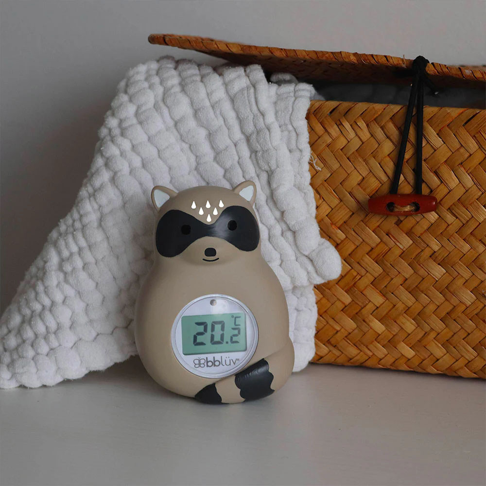 A Rakü egy biztonságos babahőmérő, amely ideális a fürdőszobában és a hálószobában való használatra. Segít biztosítani a megfelelő hőmérsékletet a baba környezetében, és figyelmeztet, ha a víz vagy a szoba túl forró vagy túl hideg.