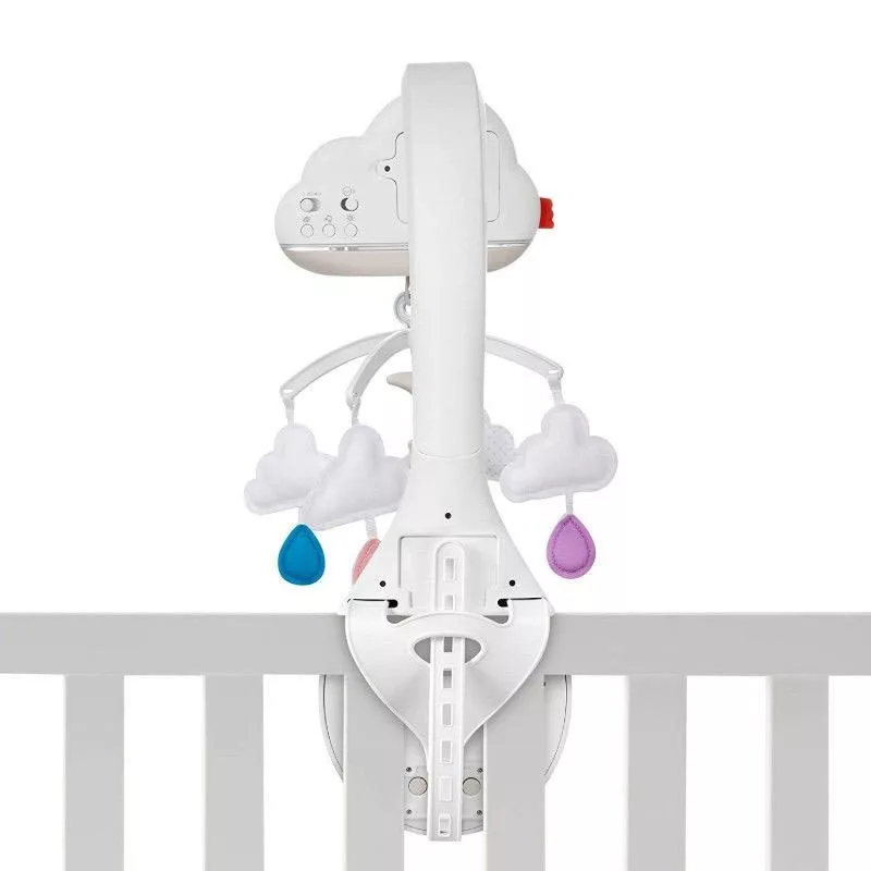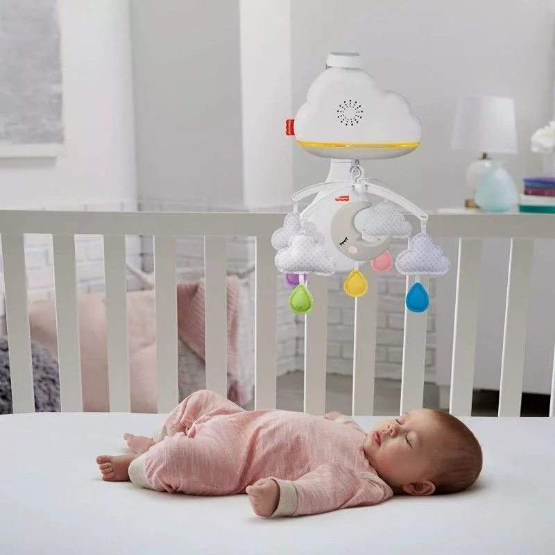 A Fisher-Price felhős kiságyforgó egyszerre megnyugtató és altató a babának és hasznos segítség a szülőknek, ami egészen a kisgyerekkorig segít megnyugtatni és elaltatni a csöppségeket. Az újszülöttek nézegethetik a színes forgó holdat, felhőket és cseppecskéket, a fényeket, miközben a kellemes (választható) zenei aláfestés elringatja őket. Az eszköz különlegessége a hangérzékelő, ami automatikusan újraindítja a forgást és a zenéket, ha a baba hangot ad ki. A megnyugtató zenék között könnyen meg lehet találni azt, amit a baba a legjobban szeret, és ami idővel emlékeztetni fogja, hogy alvásidő van. Ahogy pedig növekszik, a forgó részt levéve a vetítő az asztalra kerülhet, és továbbra is segítheti a lefekvés előtti rutint. A puha tapintású anyagok, fények és megnyugtató hangok fejlesztik a baba érzékeléseit. A puha anyagok tapintása és a lágy fények nyugtatóan hatnak és biztonságérzetet adnak. Újszülött kortól egészen 1 éves korig ajánlott. A kiságyforgó 3db AA elemmel működik, amelyet a csomagolás nem tartalmaz. Hangereje 2 fokozatban szabályozható.