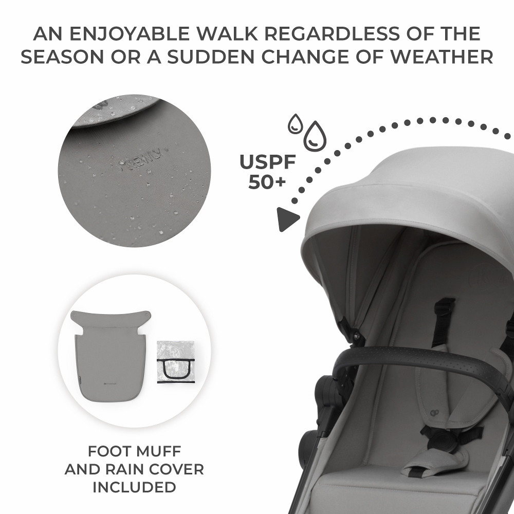 A babakocsit pillanatok alatt összeszerelheti az üléssel. Ezt a babakocsit utazáshoz tervezték - könnyen elfér egy autó csomagtartójában.