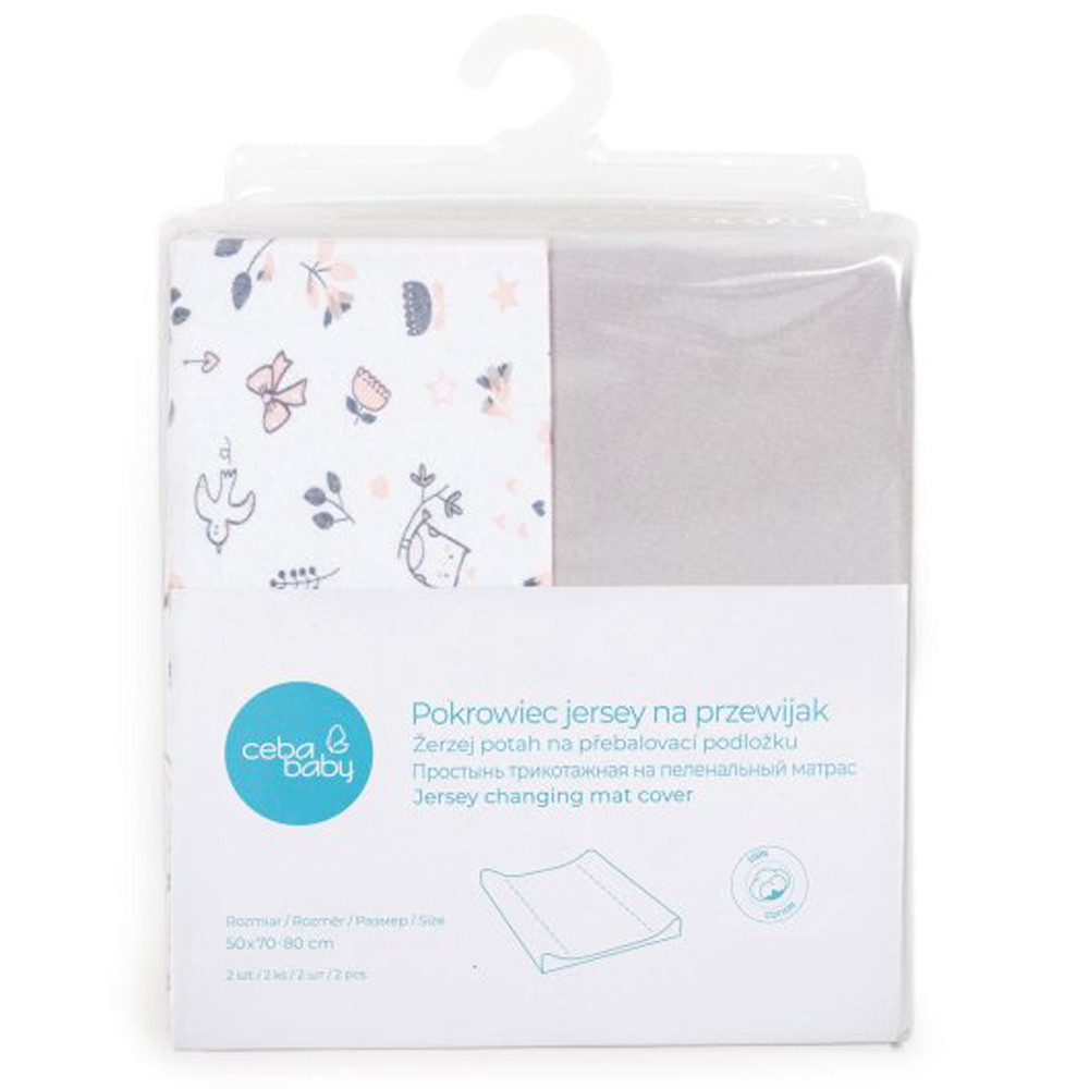 Ceba pelenkázólap huzat pamut (50x70-80) 2db/csomag világosszürke madár