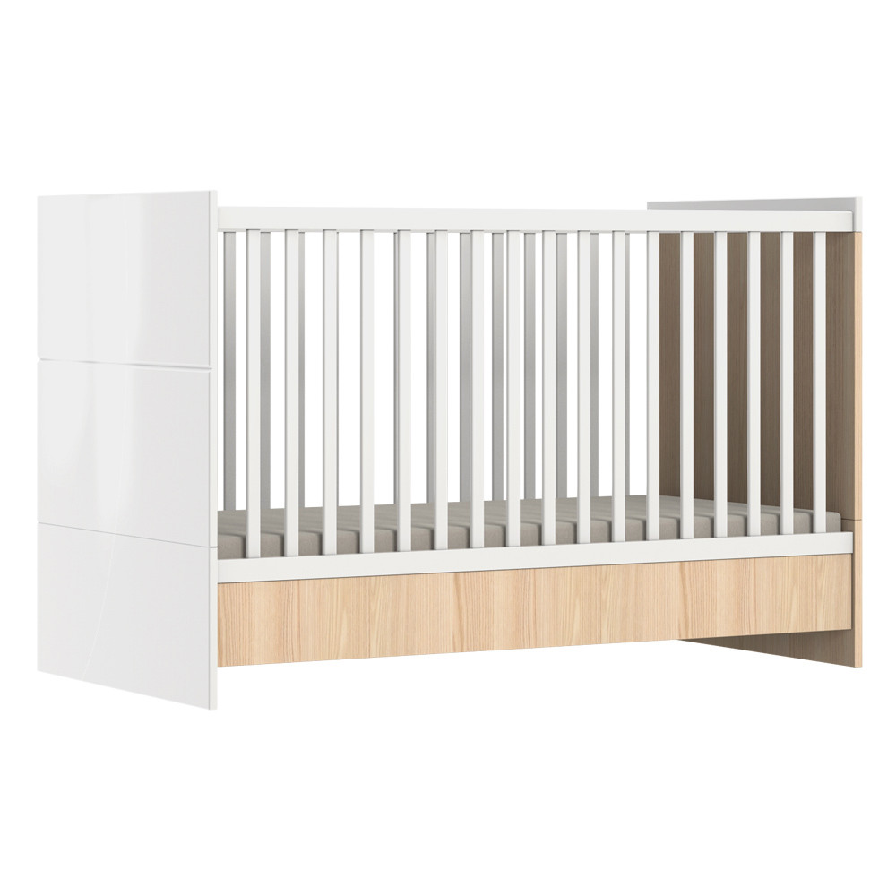 Az oldalrács típusa léces, és bükkfából készül. Az egyik oldalrács esetében 3 db léc kivehető, így a picik, mikor már önállóan közlekednek, szabadon tudnak ki-be járni.
