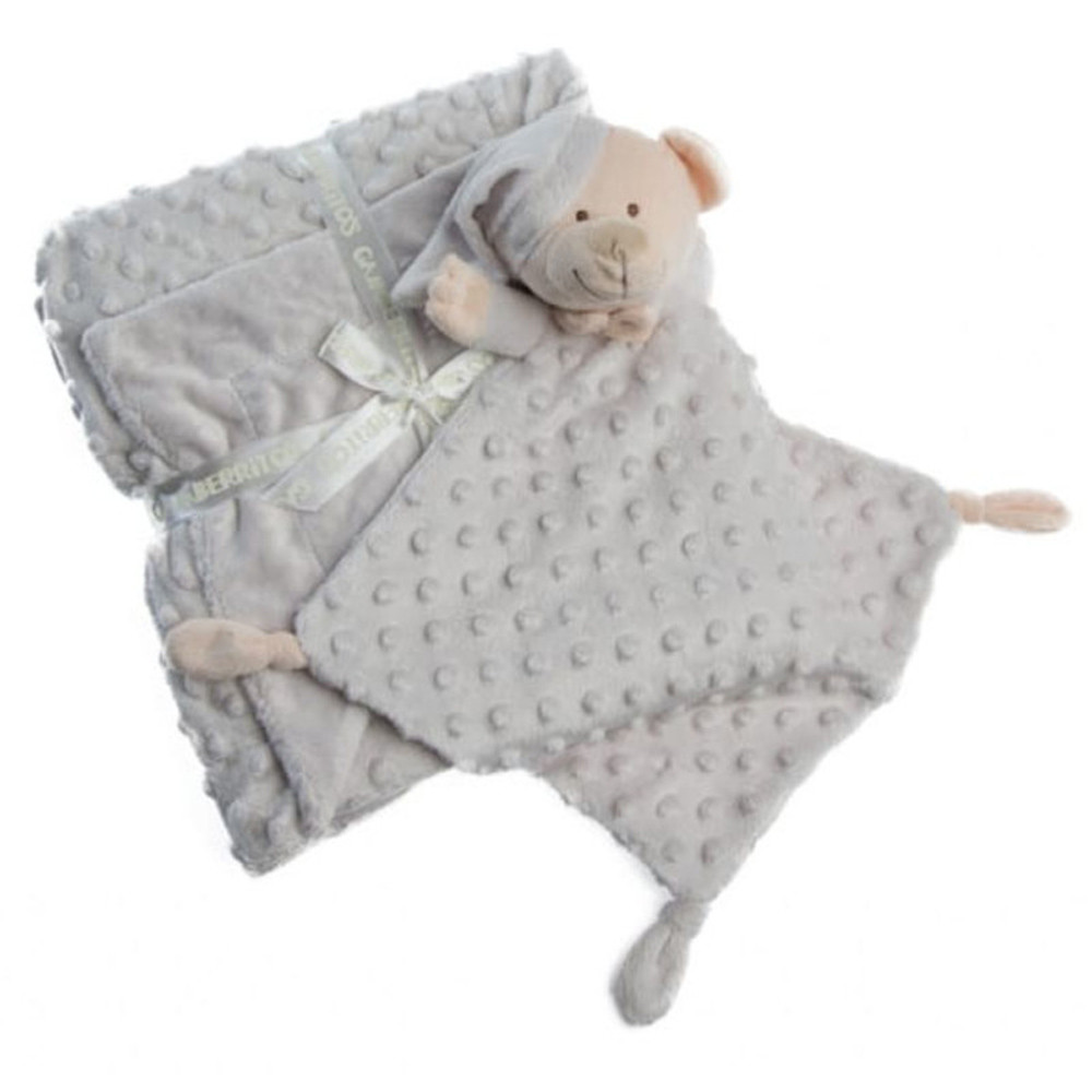 Gamberritos takaró - plüss buborékos anyagú 80x110cm plüss szundikendővel maci szürke 10339