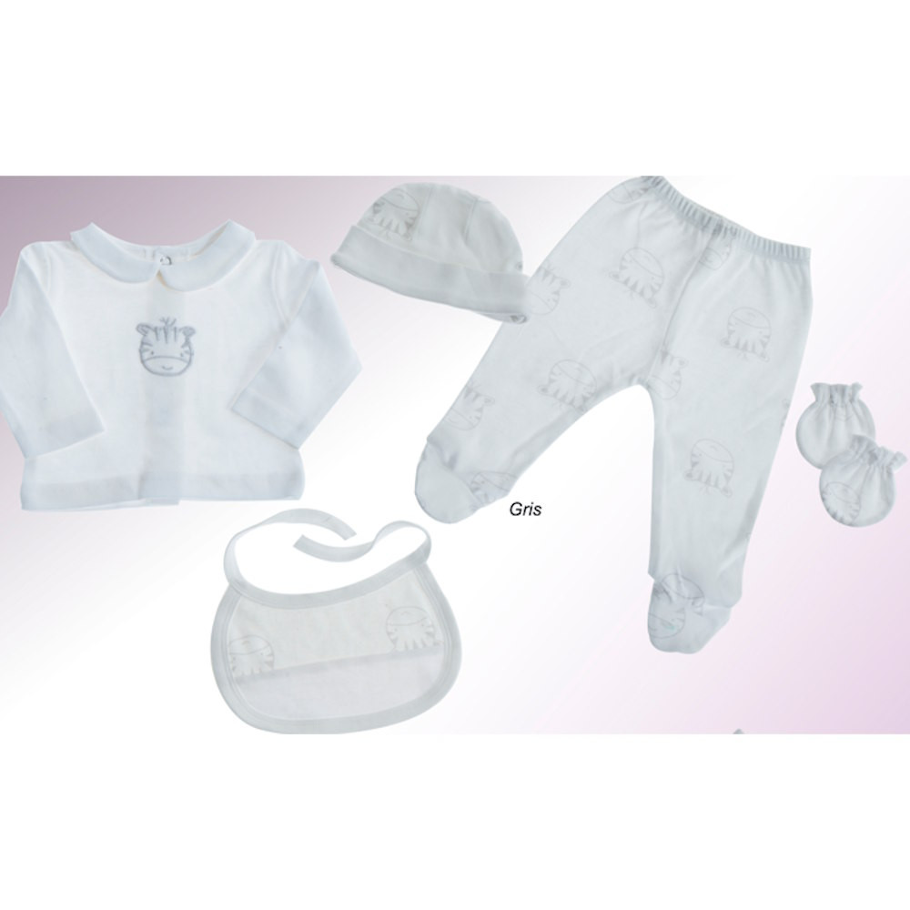 Gamberritos kiegészítő szett újszülötteknek 5 részes (sapka, kesztyű, nadrág, póló, előke) szürke 10911