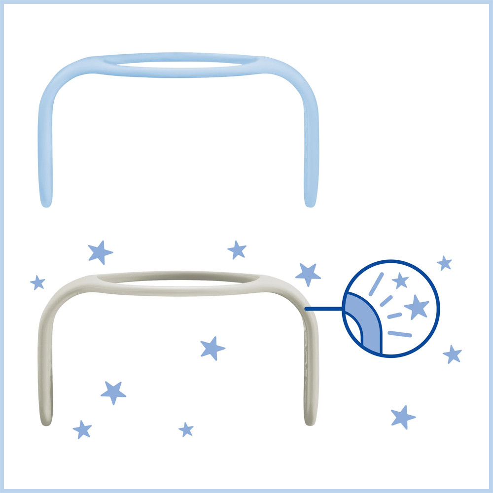 Ergonomikus kialakításának köszönhetően könnyű megfognia és a kezében tartania babának minden cumisüveget ennek a fogókának a segítségével. Sötétben világító fogóka - könnyű megtalálni a sötétben.