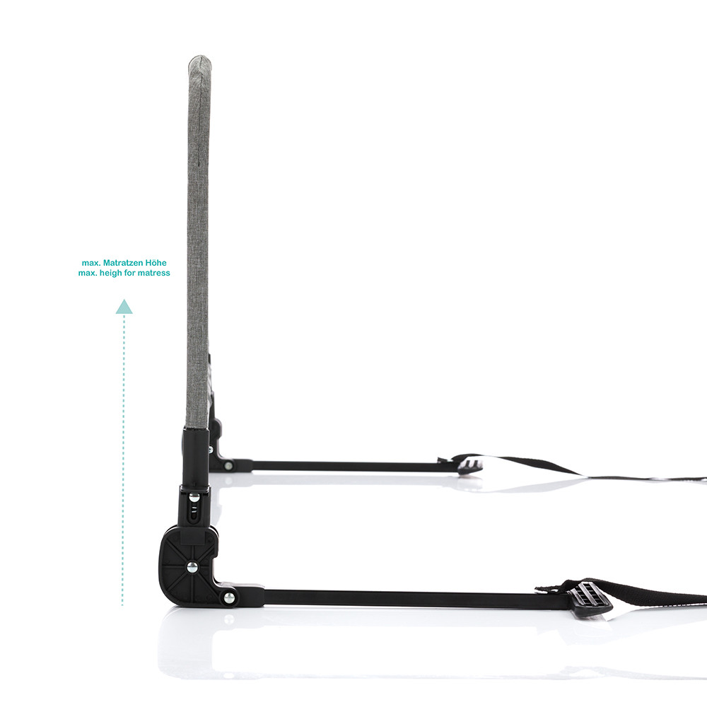 Az összeszereléshez a leesésgátlót csak a matrac alá kell helyezni. Az egyedülálló összecsukható mechanizmusnak köszönhetően az ágysín napközben lehajtható