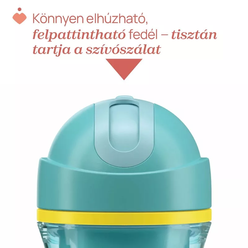 Praktikus szívószálas itató, csepegésmentes szeleppel ellátott szívószállal.
