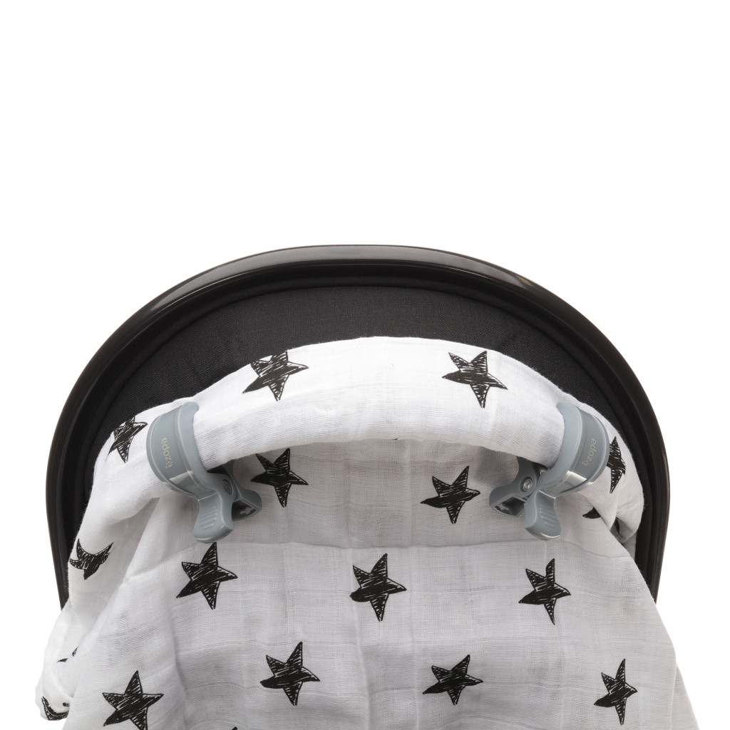 A pelenkát vagy törölközőt könnyen, gyorsan és szilárdan rögzítheti a babakocsira vagy a baba hordozóra, hogy védje a babát a naptól vagy az időjárási viszonyoktól. A játékokat a clip segítségével is rögzítheti, hogy megakadályozza az elvesztésüket. A clip kiváló minőségű műanyagból készül, amely nem tartalmaz BPA-t.