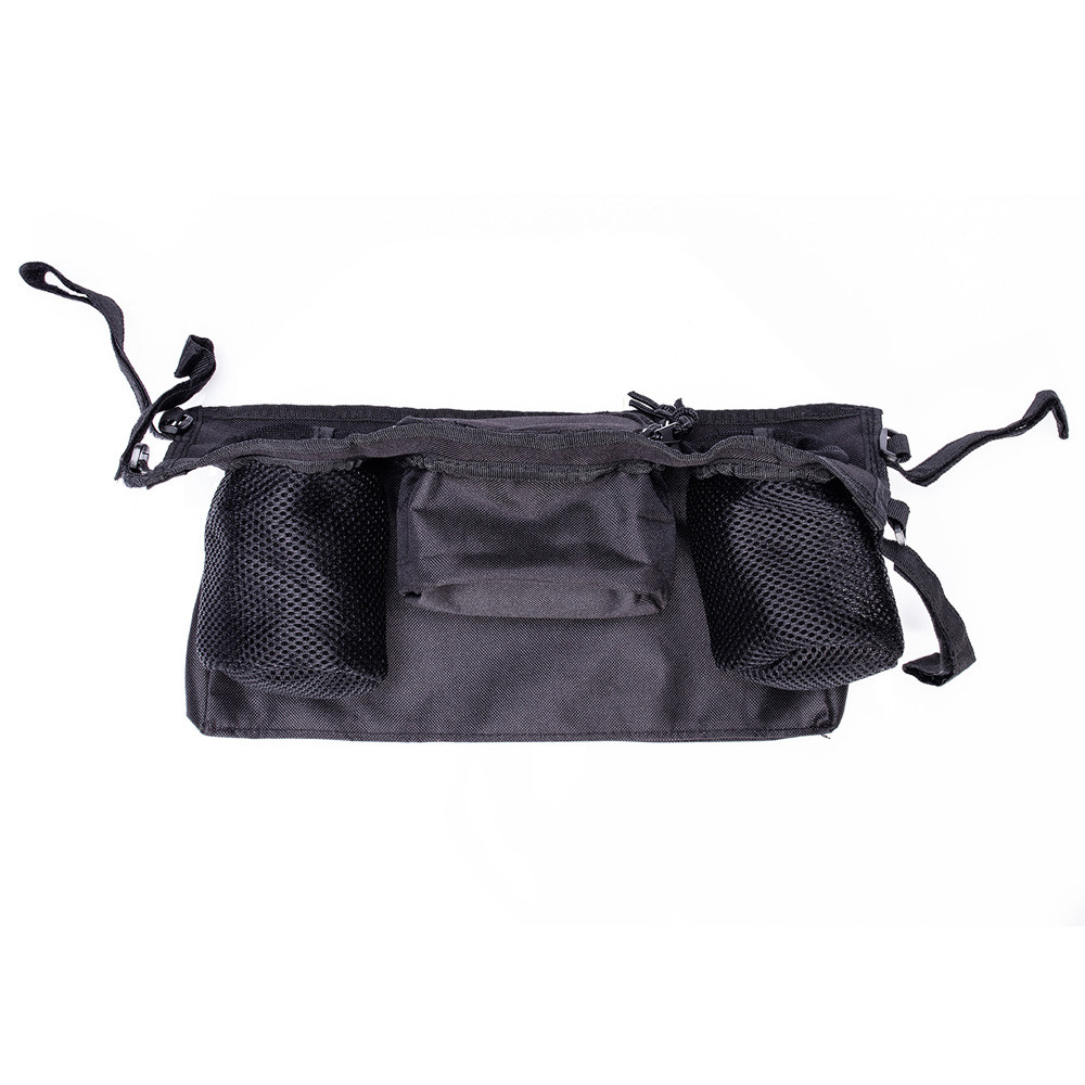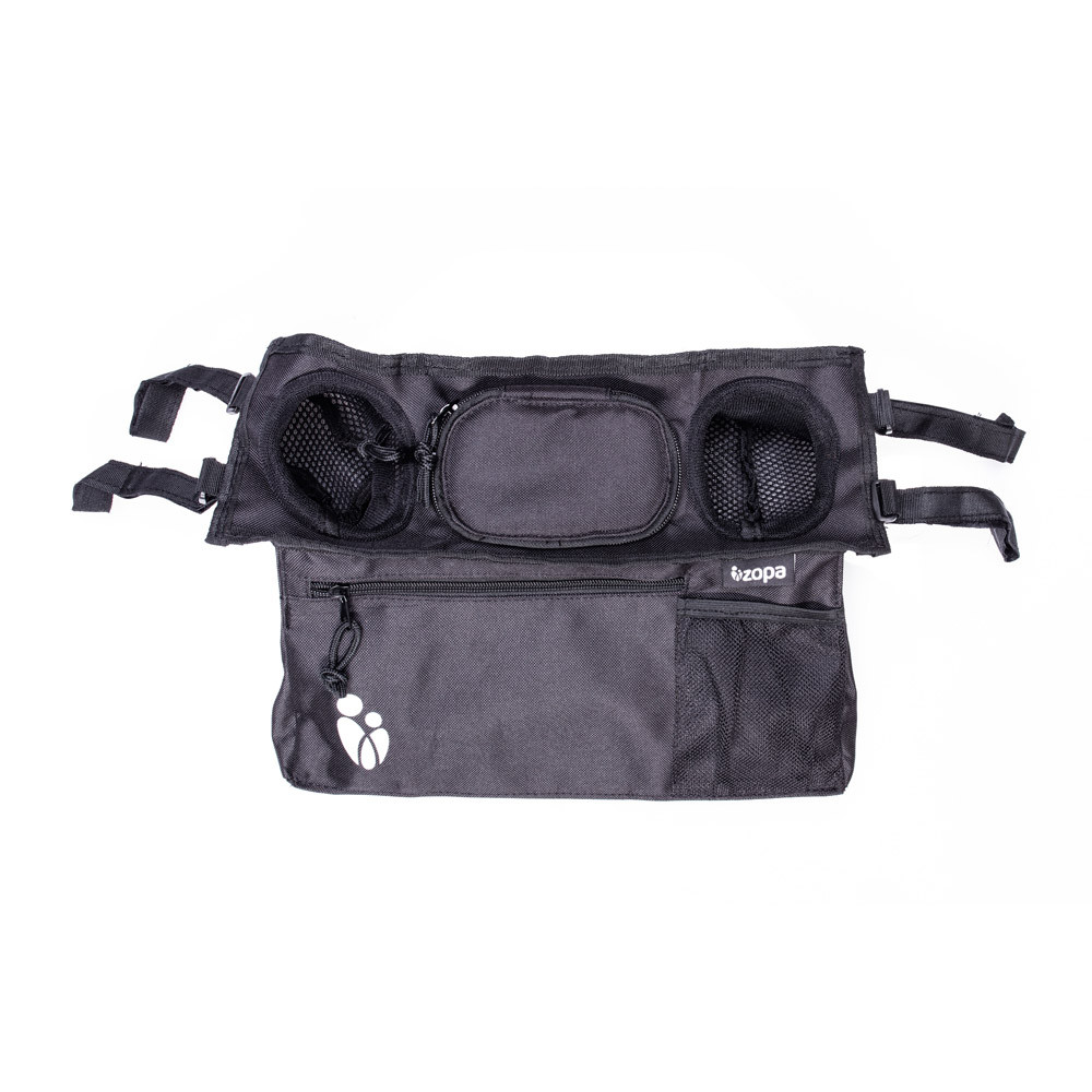 Praktikus és áttekinthető rendező táska a babával folytatott sétákhoz. A rendező táska elülső része egy nélkülözhetetlen apróságok tárolására szolgáló nagy, cipzáras zsebet tartalmaz. A rendező táska elülső oldalán egy hálós mobiltartó zseb található, így az anyuka akkor is jól látja, hogy mi történik a telefonnal, ha az néma üzemmódra van állítva. A babát így semmi sem ébreszti fel. A rendező táska alján egy a nélkülözhetetlen apróságok tárolására szolgáló cipzáras nagy zseb található. A táska oldalán két italtartó található. A rögzítése a négy tépőzáras akasztóknak köszönhetően egyszerű.